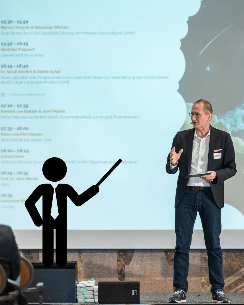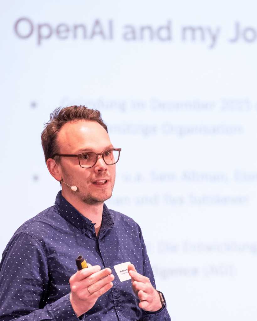 Den Start hat Matthias Plappert gemacht und seine spannenden Insights aus seiner Zeit bei OpenAI geteilt: wie wichtig es auch für Unternehmen ist, dass man permanent experimentiert und immer wieder guckt, wo es einen Product-Market-Fit gibt. Mit GPT-3 haben sie nämlich sämtliche anderen Bemühungen sofort gestoppt, nachdem sie gemerkt haben, dass sie “etwas Großem auf der Spur” waren – sie sollten Recht behalten 👉